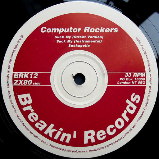 View full detailsComputor Rockers- Suck My Second Hand 12 Inch Single Cover- Generic Vinyl- VG Catalogue Number- BRK12 Record Label- Breakin' Records Year- 1998