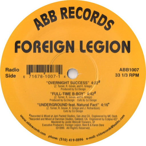 Foreign Legion- Overnight Success/Full Time B Boy, Second Hand 12 Inch Single